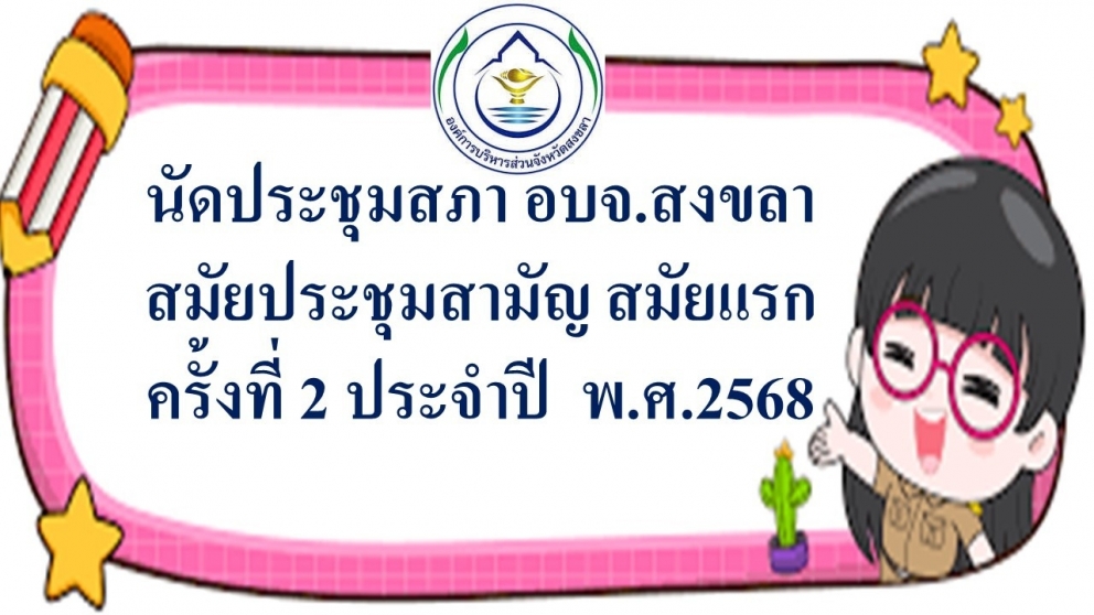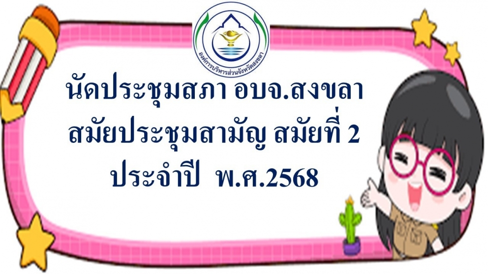 นัดประชุมสภาองค์การบริหารส่วนจจังหวัดสงขลาสมัยประชุมสามัญ สมัยที่ 2 ครั้งที่ 2 ประจำปี พ.ศ.2568 (ดู : 1,637)